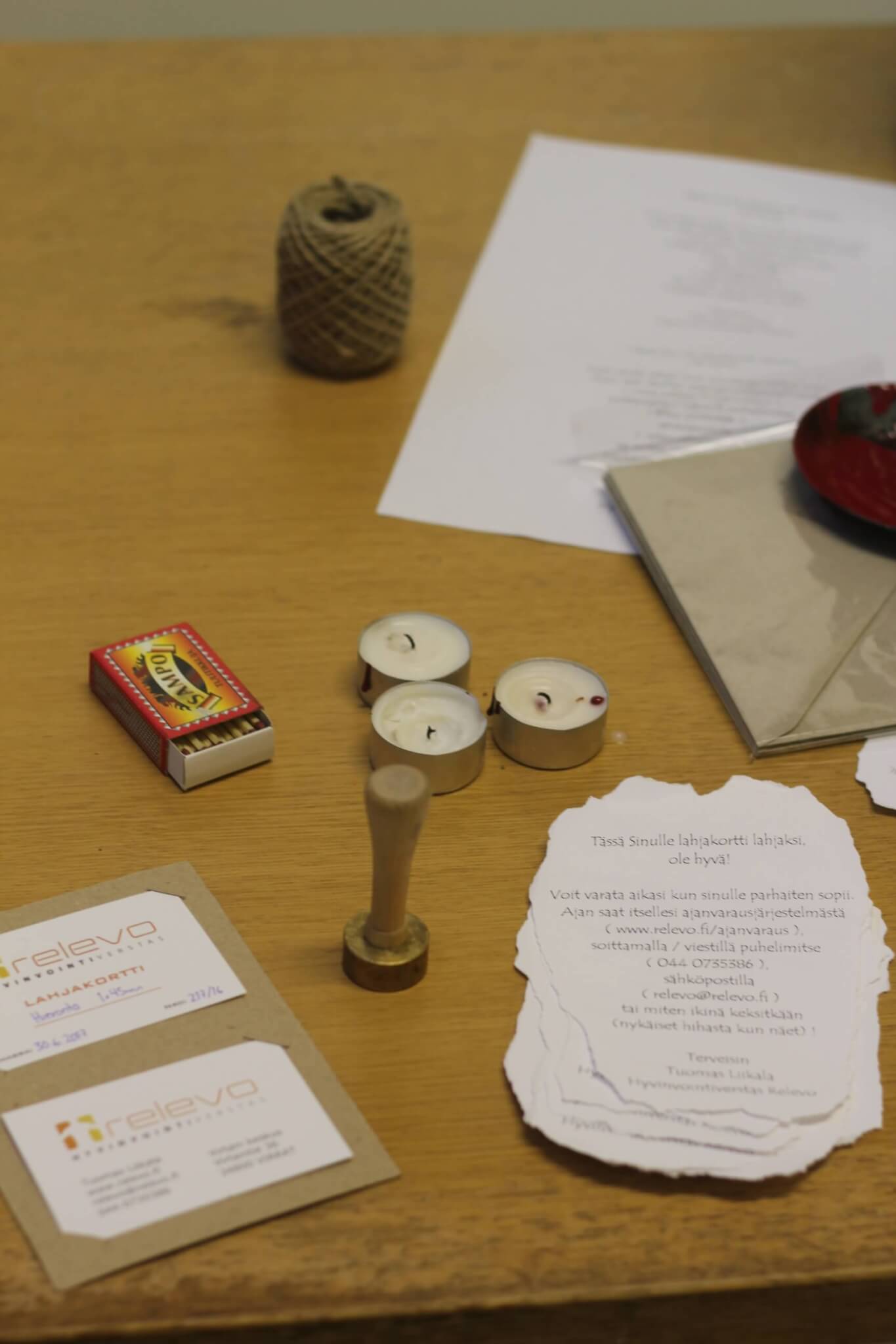 Nyt on se aika vuodesta, kun minulla ja (monella muullakin yrittäjällä) alkaa lahjakortteja menemään. Se on oikeasti tosi kiva juttu, että lahjaksi ostetaan työtä pienelle paikkakunnalle. Muutenkin sitä rahaa lapataan paljon muualle (verkkokaupat, isot paikkakunnat ja Tuuri yms). Täällä pienellä paikkakunnalla ne liikkeet vähenee ihan silmissä. Itse oon siinä mielessä onnellisessa asemassa, että mun tarjoamiani tuotteet on palveluita. Ja sellaisia palveluita, joita ei kannata kovin kaukaa ostaa. Lisäksi ne on vielä sellaisia, että moni käyttää niitä useita kertoja vuodessa.